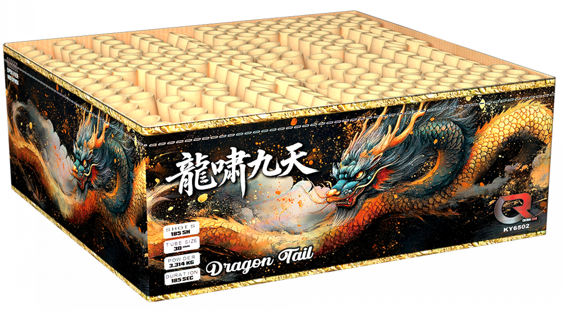 Maak je klaar voor een ware vuurwerkbeleving met DRAGON TAIL – een massieve 185-schots compound en nieuw paradepaardje van China Red! Deze grote bak is uitgerust met dikke tubes en levert een afwisselende en energieke show met een mix van V-shape en I-shape afvuring.